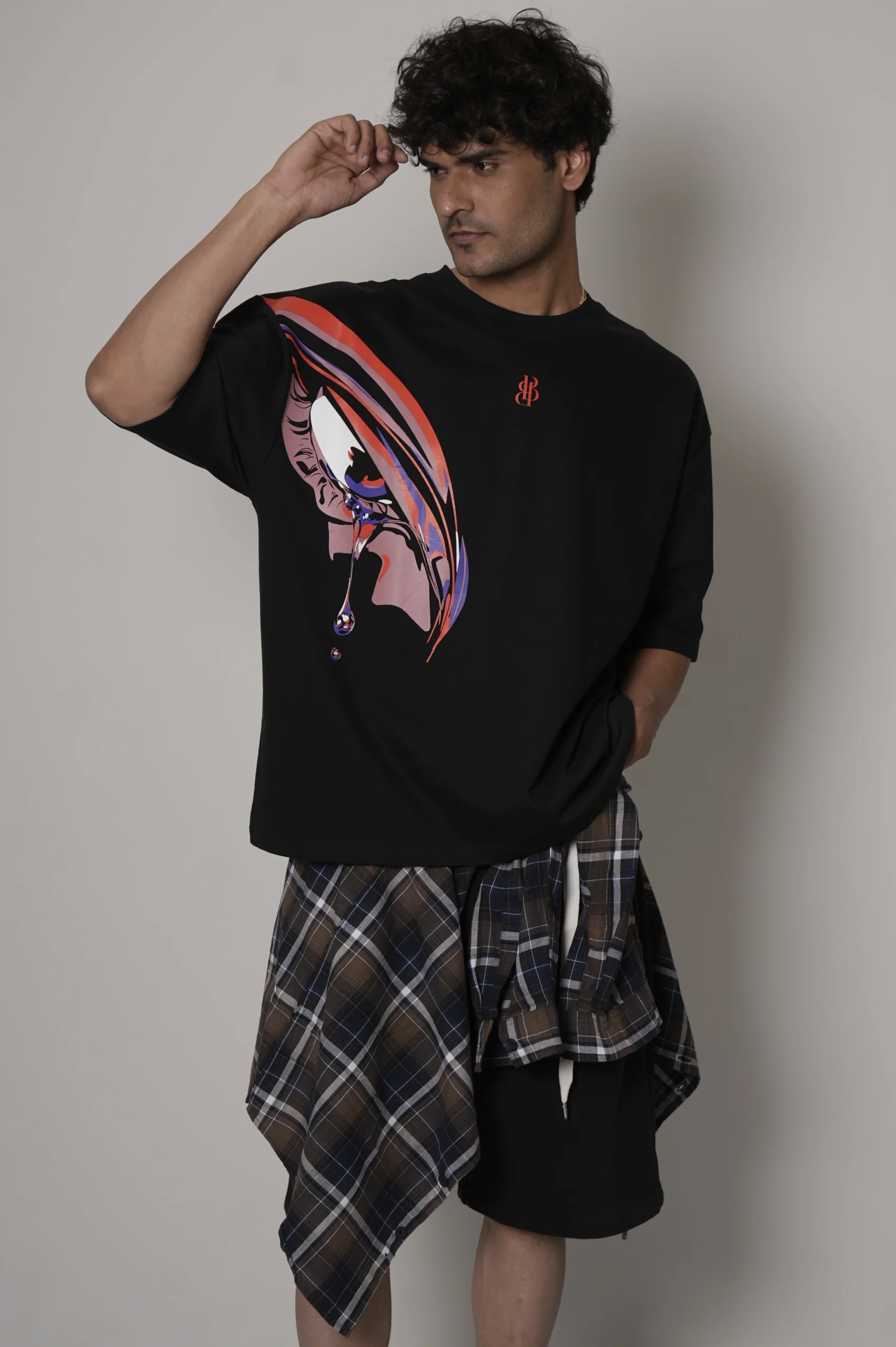 Bold angel artwork with falling tears, symbolising raw emotion and strength.