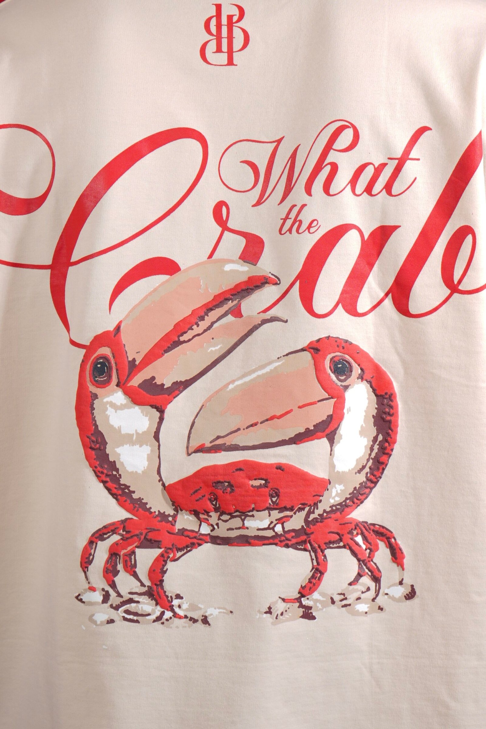 On the cream-colored T-shirt, this red contrast leaves a unique mark, giving the design a standout, attractive look.